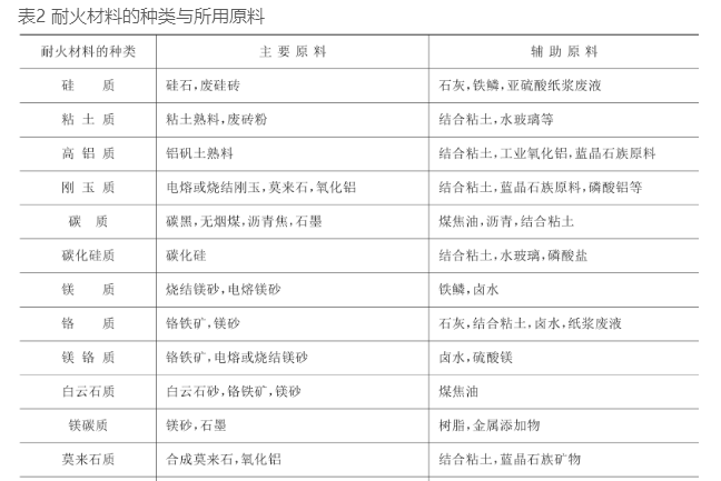 耐火原料的種類繁多。按原料的生成方式可分為天然原料與人工合成原料兩大類,天然礦物原料仍然是耐火原料的主體。