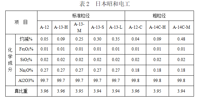 -為提高標(biāo)準(zhǔn)水平,廣泛收集了部分國外煅燒氧化鋁產(chǎn)品標(biāo)準(zhǔn)。主要有美鋁化學(xué)(現(xiàn)為安邁)、日本昭和電工、住友等國外煅燒氧化鋁企業(yè)標(biāo)準(zhǔn)(見表2/表3)。根據(jù)調(diào)研、收集的相關(guān)資料,經(jīng)過初步分析、討論,制定了《a氧化鋁》行業(yè)標(biāo)準(zhǔn)征求意見稿,根據(jù)生產(chǎn)廠家和用戶意見制定了預(yù)審稿,通過預(yù)審會后又根據(jù)會議專家和用戶意見完成了標(biāo)準(zhǔn)送審稿。