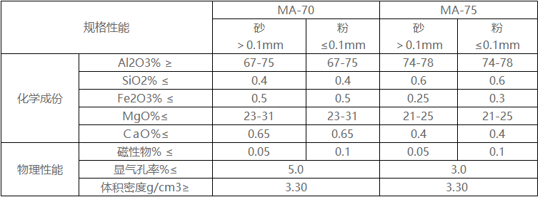 鎂鋁尖晶石化學(xué)指標(biāo)